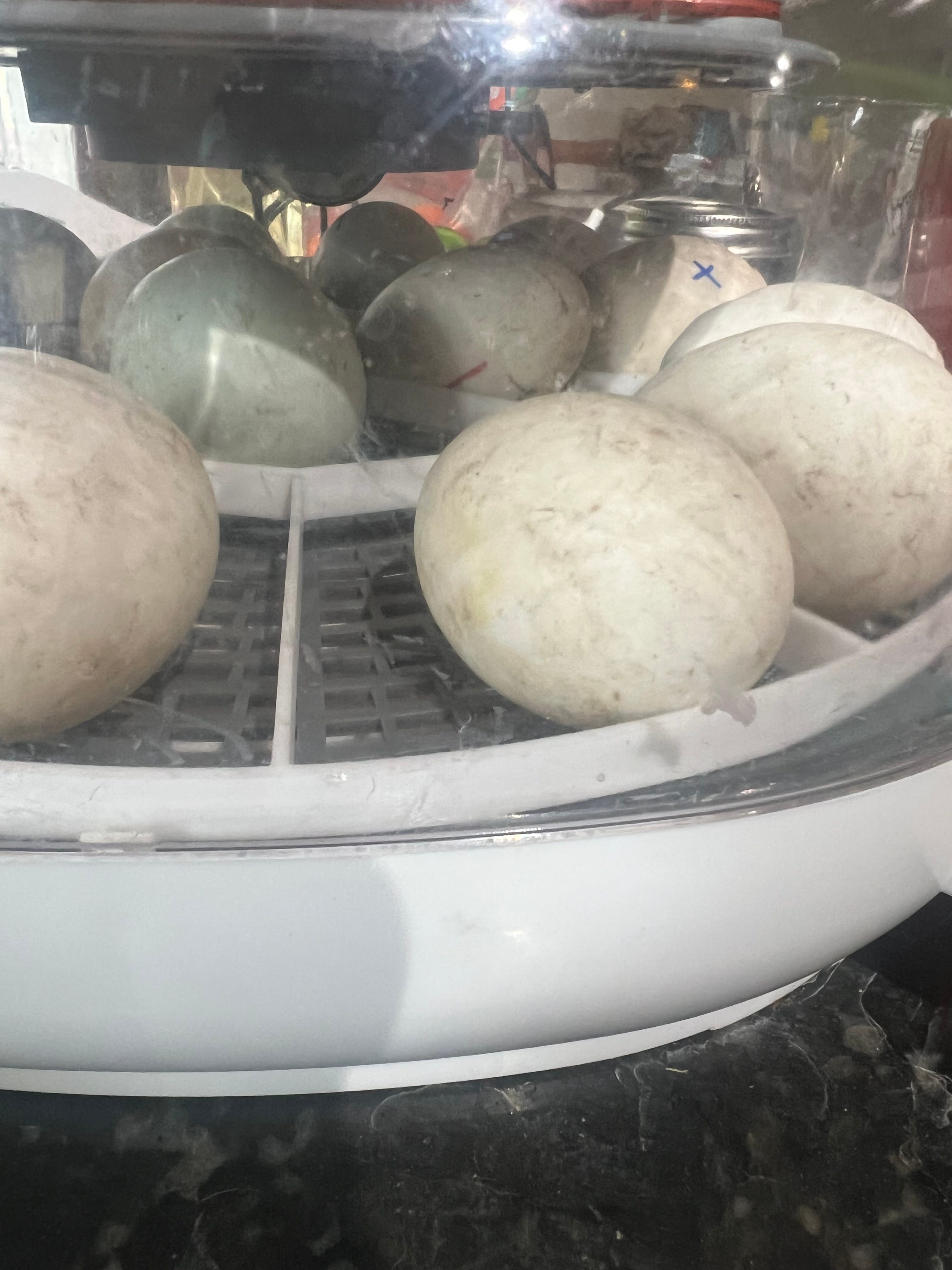 For 14/15 eggs I saw the characteristic veiny spider looking blob that indicates the egg is fertilized and starting to grow. On the one dud it just looked like a normal yolk inside the egg. Since it was my first time incubating eggs I didn’t immediately discard this one, just marked it and decided to keep an eye on it. In hindsight - I’ll likely remove any unfertilized eggs like this right away and feed them to my dogs - no waste here! I used resources from metzer farms including their candling chart to check my progress. Metzer farms is where I ordered my original 5 ducks and they’re a great family business!!